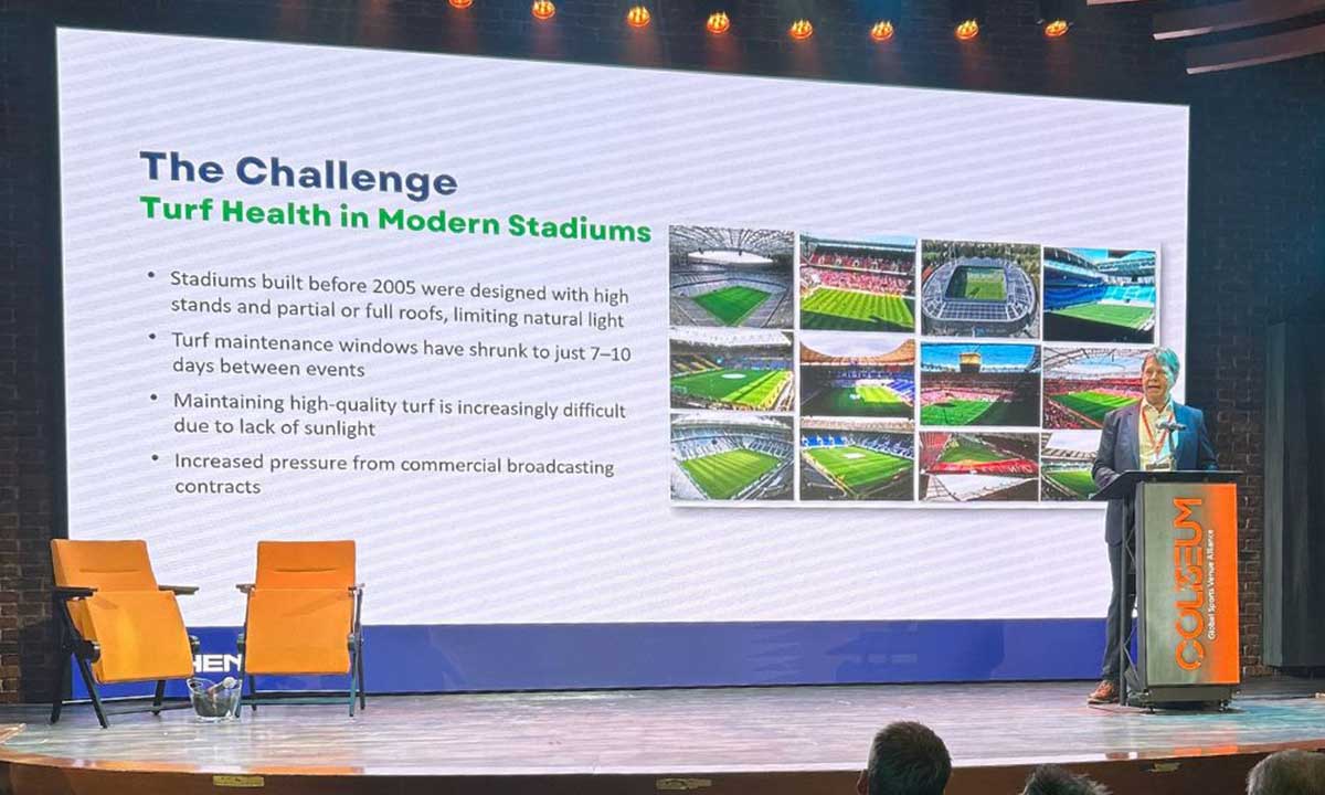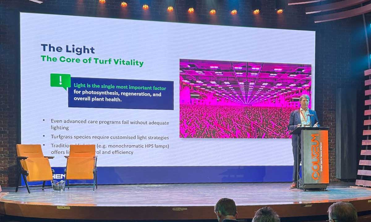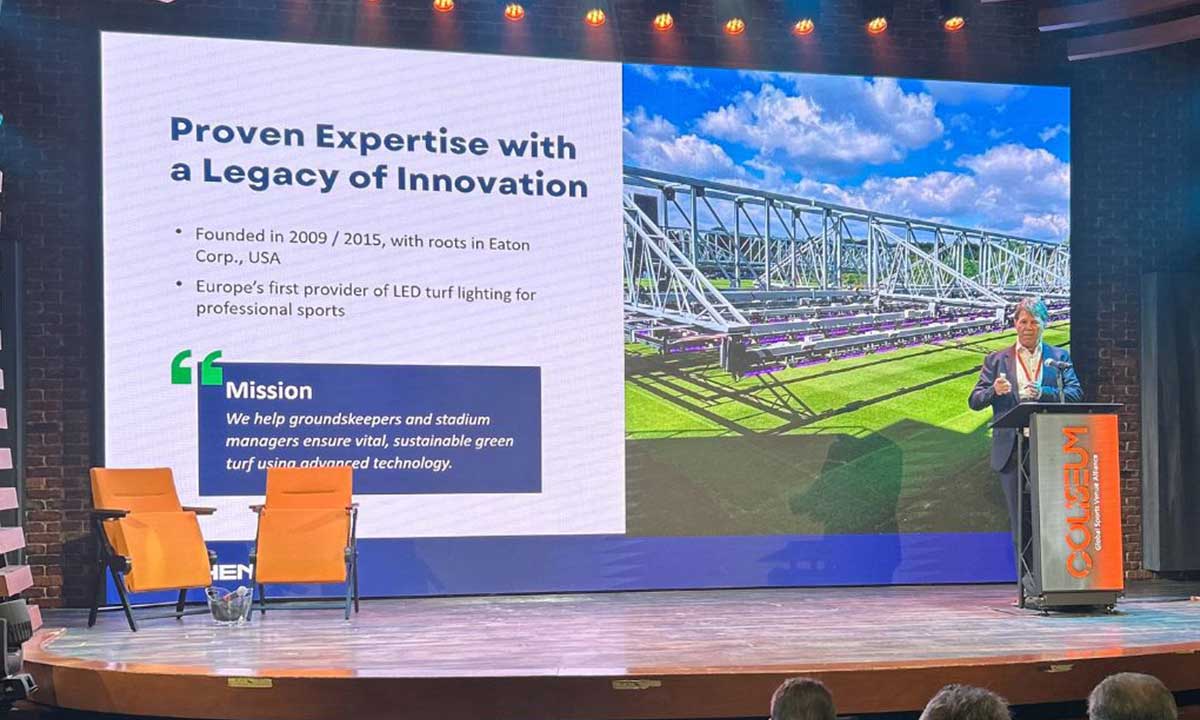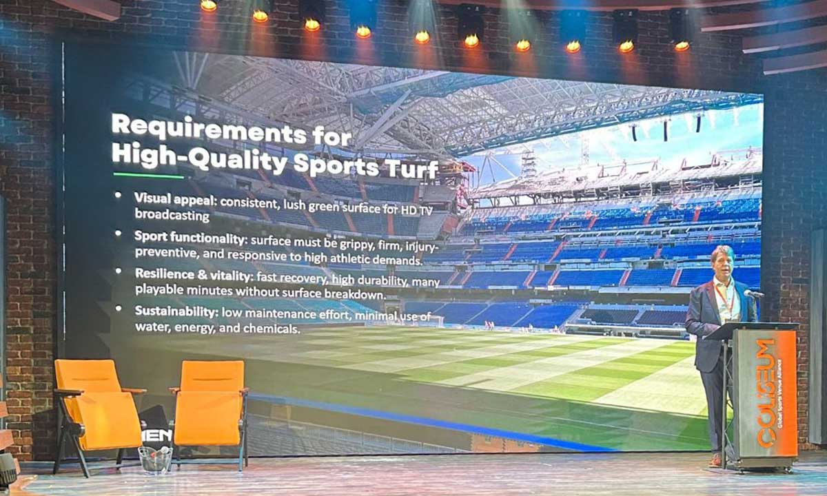 Als offizielle Sponsoren der Coliseum Summits nutzen wir jede Gelegenheit – von digitalen Kampagnen und Fallstudien, bis hin zu persönlichen Gesprächen. Bei den Events in London und Riad trat unser Sales Director Tim Engels mit Branchenführern in einen offenen Austausch über Stadionleistung und Nachhaltigkeit. Erst kürzlich in Los Angeles sprach unser Geschäftsführer Horst Theisen auf der Bühne über die entscheidende Rolle von Technologie, Automatisierung und Daten bei der Gestaltung der Rasenpflege von Stadionflächen der Zukunft.