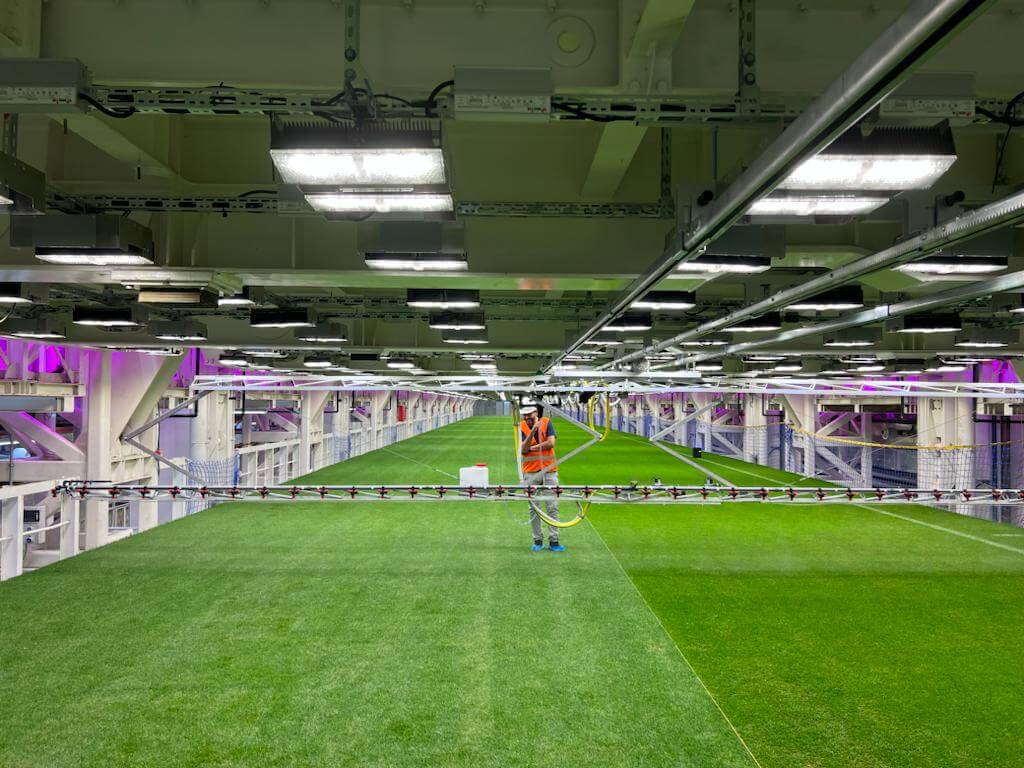 Keiner von beiden musste sich um die Voraussetzungen für einen gesunden Rasen oder den Schutz der Oberfläche kümmern. Tatsächlich mussten beide sicherstellen, dass die Anlage so oft wie möglich genutzt werden konnte und würde, auch wenn dies die Ausrichtung von Nicht-Sportveranstaltungen beinhaltete. Ein 30 Meter tiefes Gewächshaus unter dem Spielfeld wurde mit einer Reihe von Hightech-Technologien ausgestattet, um den Rasen mit allem zu versorgen, was er braucht, um in perfektem Zustand zu bleiben. Die Technologie ist mit dem „Internet der Rasenflächen” verbunden.
