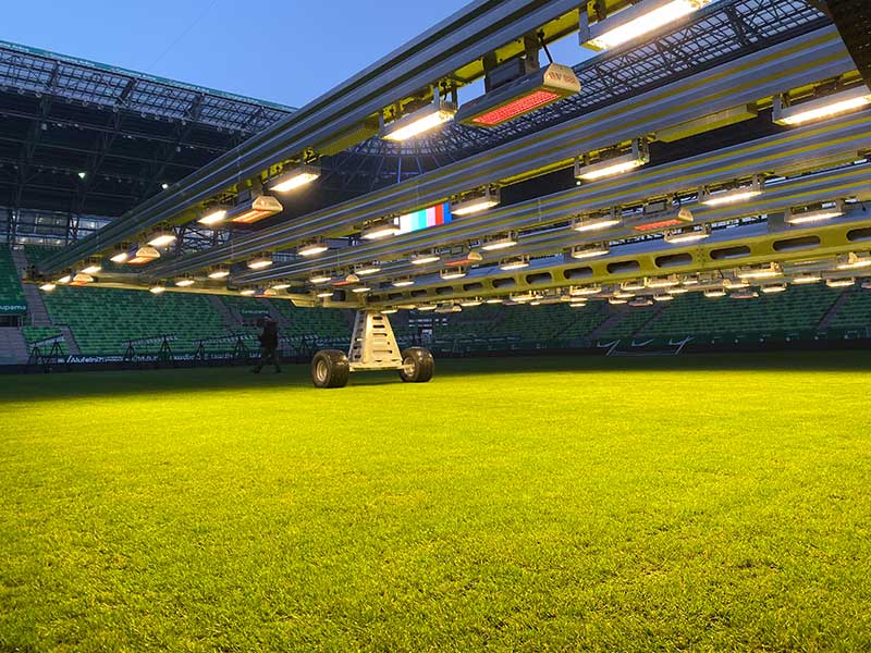 Diese tragbaren, modularen Einheiten basieren auf der gleichen CLS-Technologie, die auch in unseren großen Stadionlösungen zum Einsatz kommt, und sind für einen schnellen Einsatz und eine effektive Regeneration des Rasens konzipiert.